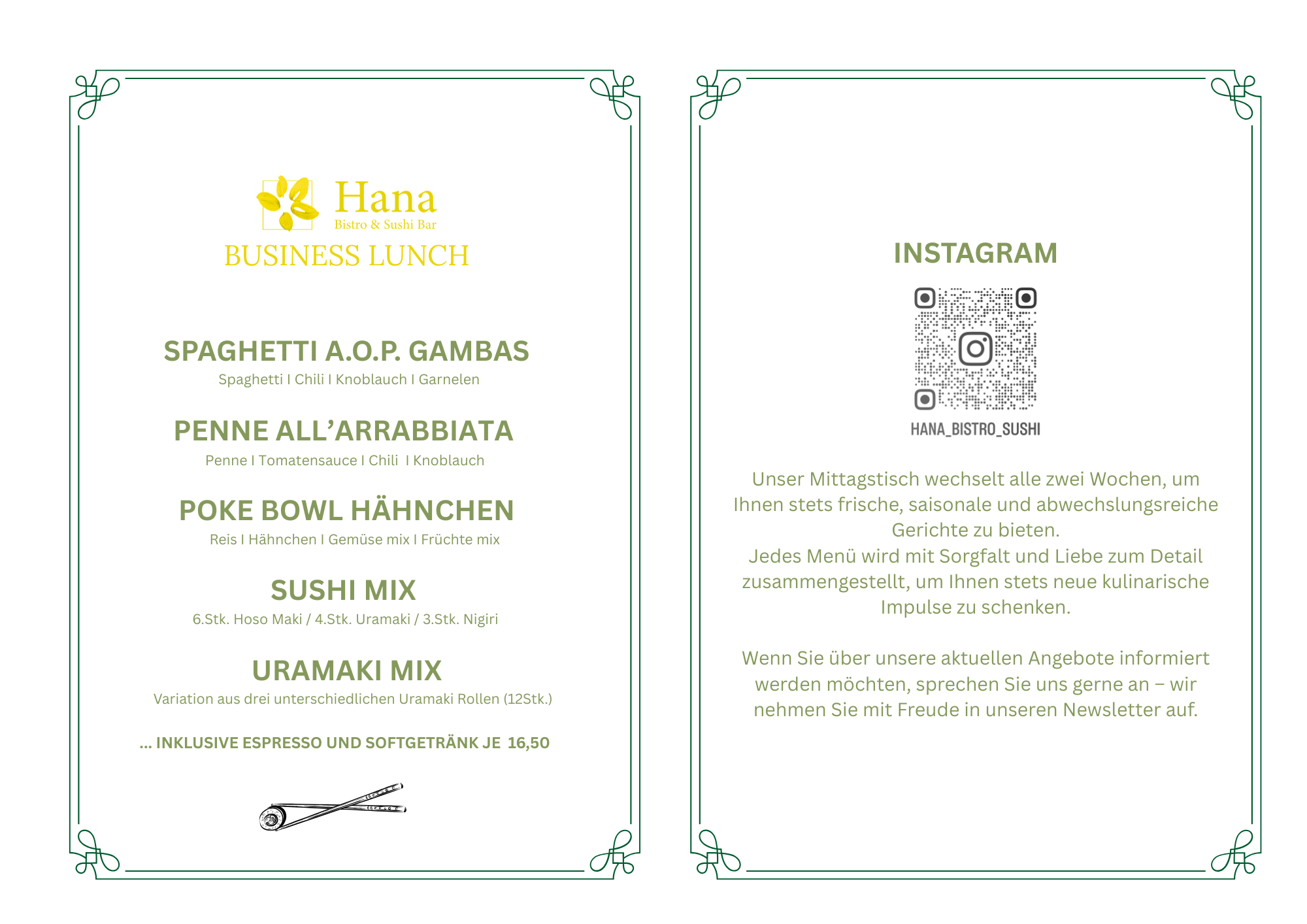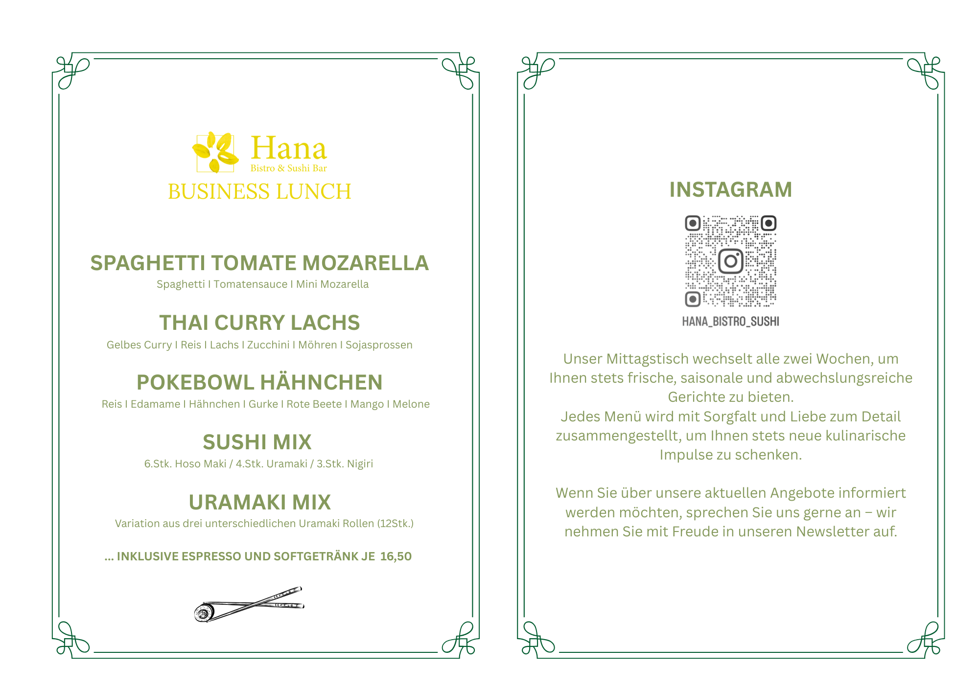 Willkommen im Hana Bistro & Sushi Bar in der wunderschönen Stadt Velbert. Wir freuen uns, Sie als unseren Gast begrüßen zu dürfen! Lassen Sie sich von unserer köstlichen Auswahl an asiatischer, internationaler und japanischer Küche verzaubern. Unser freundliches Personal serviert fantastische hausgemachte Küche und Fusionsküche. Unsere schmackhaften Speisen erwarten Sie! Bringen Sie Ihre Freunde und Familie mit und genießen Sie sie. Hier können Sie sich mit unserem köstlichen Dessert verwöhnen lassen. Wir gehen auf unterschiedliche Ernährungsvorlieben ein und bieten eine Reihe glutenfreier, laktosefreier, veganer und vegetarischer Optionen an. Genießen Sie zu Ihrer Mahlzeit leckeres Bier, Wein, Kaffee und Tee in unserem gemütlichen Ambiente. Lehnen Sie sich zurück, entspannen Sie sich und genießen Sie Mittag- und Abendessen in unserem exquisiten Lokal.